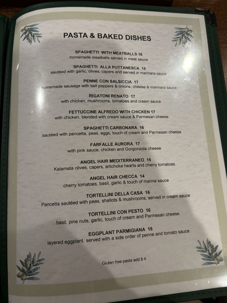Vegetarians will find plenty to savor, while vegan options ensure inclusivity for all diners. Don’t miss out on their decadent desserts, especially the rich Tiramisu and delightful Cannoli, which promise a sweet finish to your meal. With features such as cozy outdoor seating and an inviting ambiance, Renato’s is perfect for casual family dinners or group gatherings. Customer favorites like Calamari Fritti and Linguini alla Pescatore highlight the menu's diversity, making it a culinary gem worth experiencing.